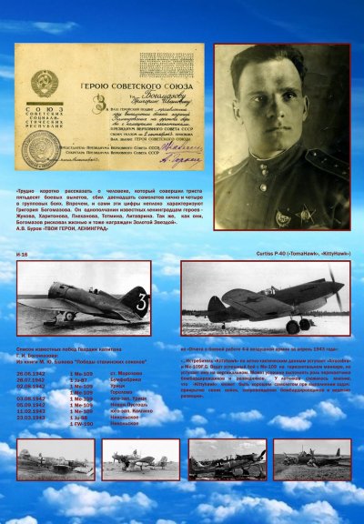 Заместитель командира эскадрильи 158-го истребительного авиационного полка, старший лейтенант Григорий Богомазов к июлю 1943 года совершил 350 боевых вылетов, в 50 воздушных боях лично сбил 12 и в группе 4 самолёта противника.